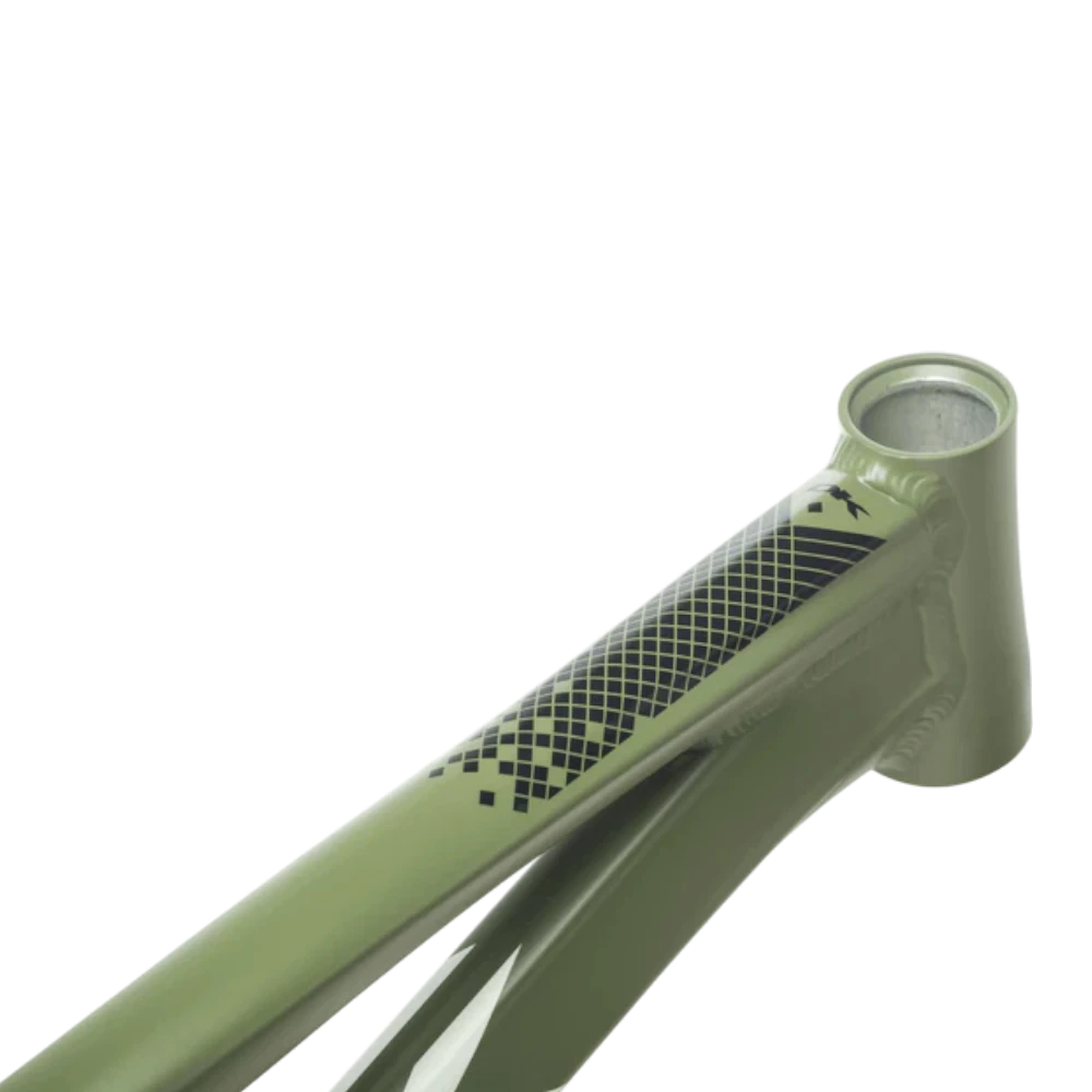 Der hydrogeformte Rohrsatz aus Aluminium der 6000er Serie erhöht die strukturelle Steifigkeit und ermöglicht eine direkte Kraftübertragung beim Start sowie in Beschleunigungsphasen. Die flache, rennorientierte Geometrie unterstützt kontrolliertes Handling in schnellen Kurven und auf anspruchsvollen Streckenprofilen. Dank der 3D-Ausfallenden kann der Rahmen mit 10 mm, 15 mm oder 20 mm Achsen gefahren werden. Interne Zugverlegung, das trapezförmige Sitzrohr und der mitgelieferte Tapered-Steuersatz unterstreichen den klaren Fokus auf professionellen BMX-Race-Einsatz.