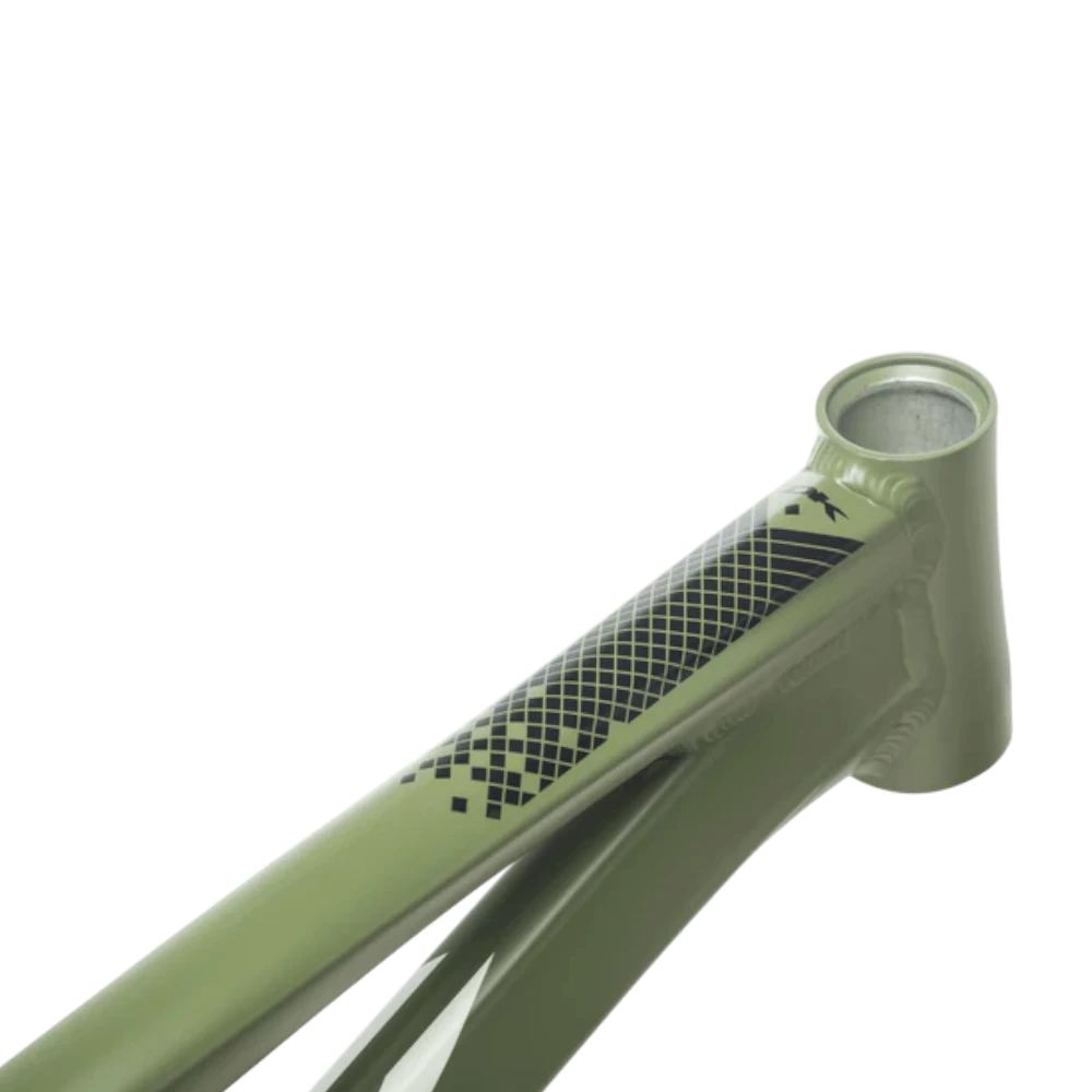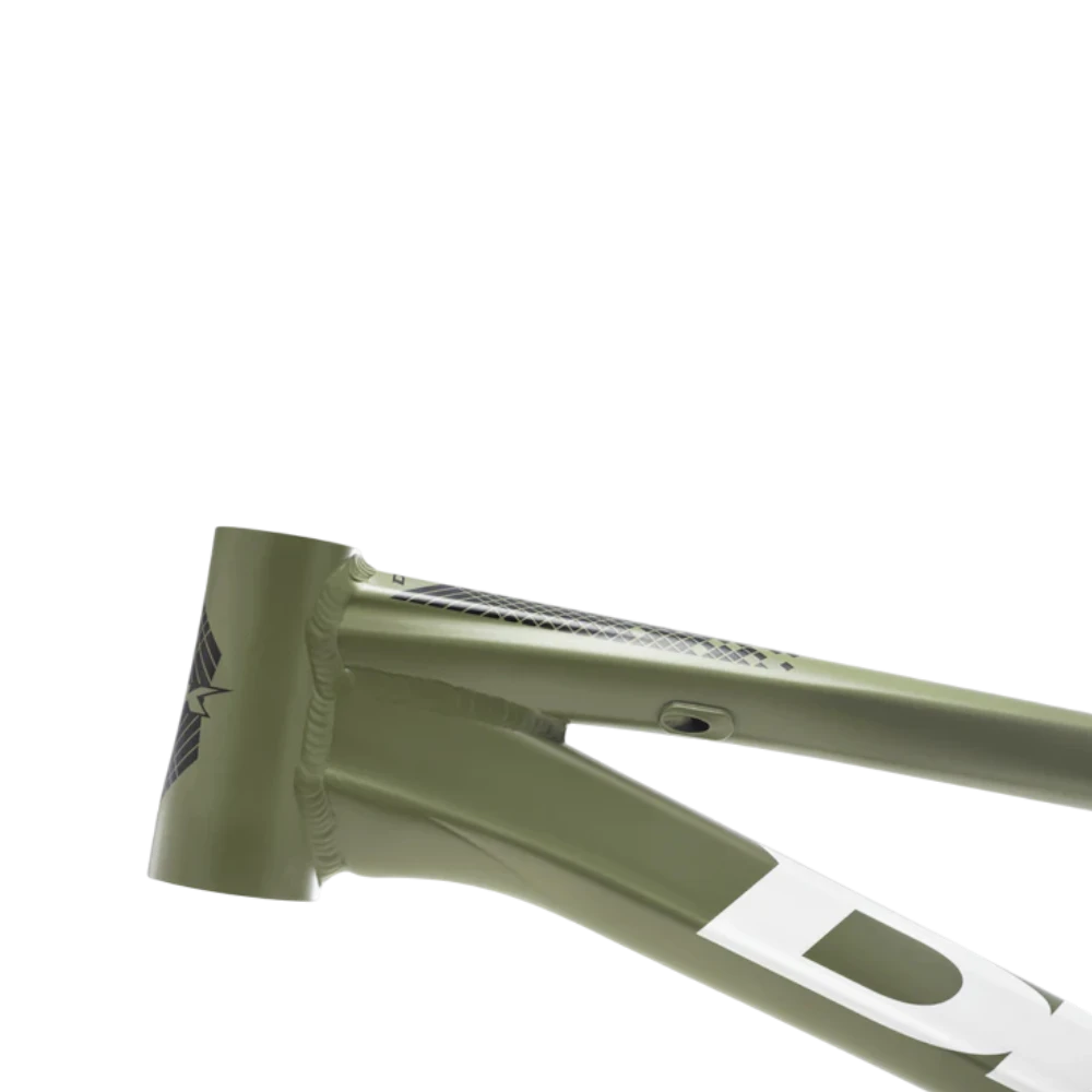 Die Pro-XXL-Größe bietet mehr Reach und einen längeren Radstand, was sich besonders bei hohen Geschwindigkeiten in Form von zusätzlicher Laufruhe und Kontrolle bemerkbar macht. Der hydrogeformte Rohrsatz aus Aluminium der 6000er Serie verbindet geringes Gewicht mit hoher struktureller Stabilität. Details wie die interne Bremszugverlegung, das trapezförmige Sitzrohr im Tretlagerbereich und die variablen 3D-Ausfallenden mit integrierten Kettenspannern machen den Rahmen zu einer konsequenten Wahl für ambitionierten BMX-Race-Einsatz.