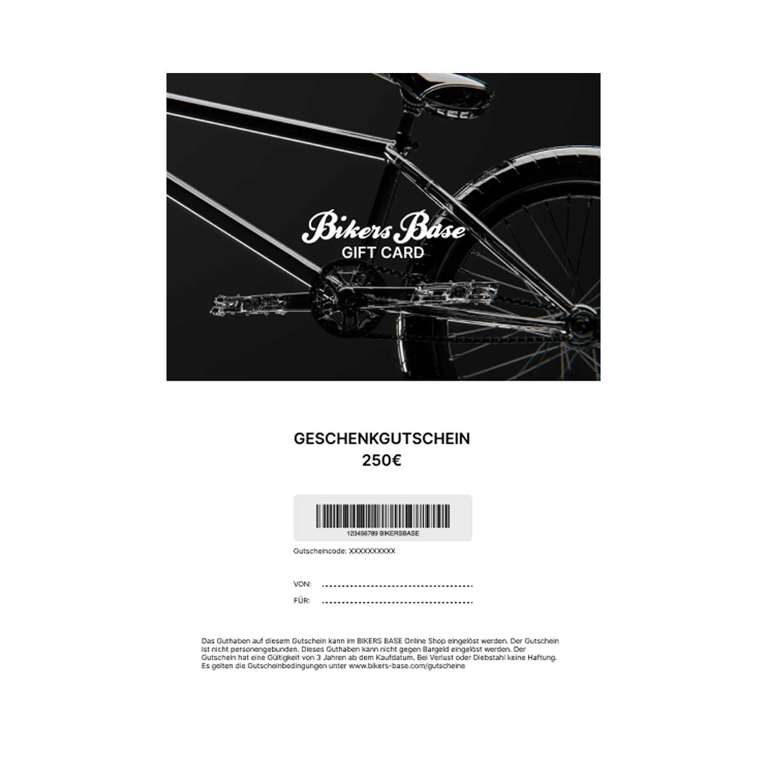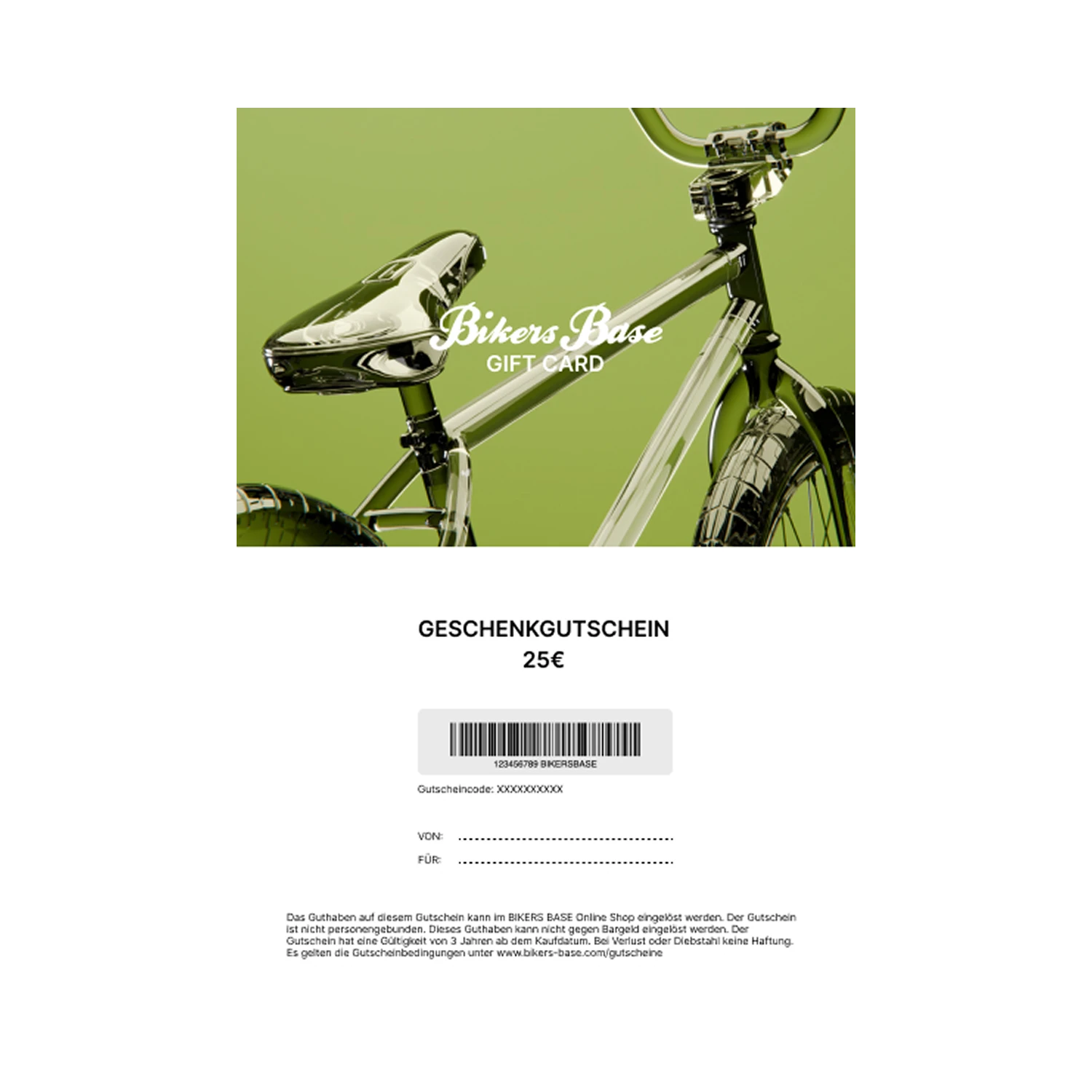 Looking for a BMX gift but don't know what to get? No problem with the Bikers Base BMX online shop gift voucher. Whether for a birthday, Christmas, or any other occasion, the Bikers Base voucher is the perfect gift.