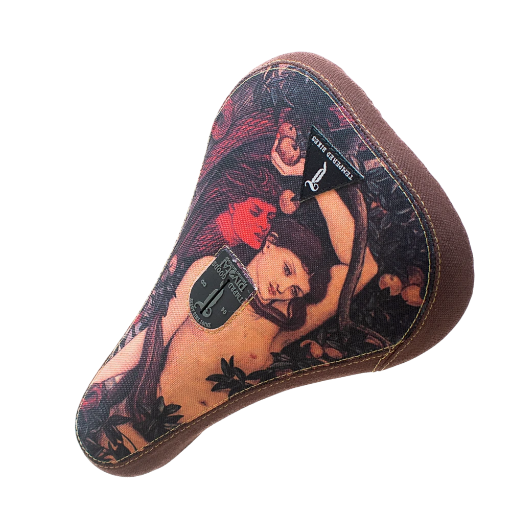 The Tempered Garden of Eden Pivotal Seat is a fat seat with a vinyl cover, colored allover design and a weight of 317 g – suitable for pivotal posts.