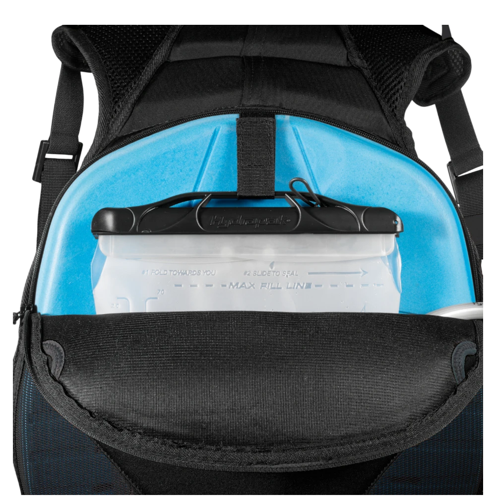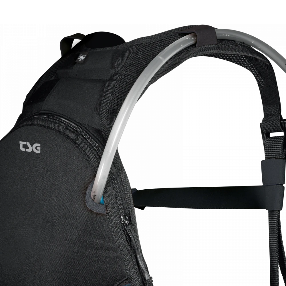 Trinksystem Vorbereitung: Trinkblasen Fach, vier Schlauchdurchführungen, Schlauchführungen an Schultergurten