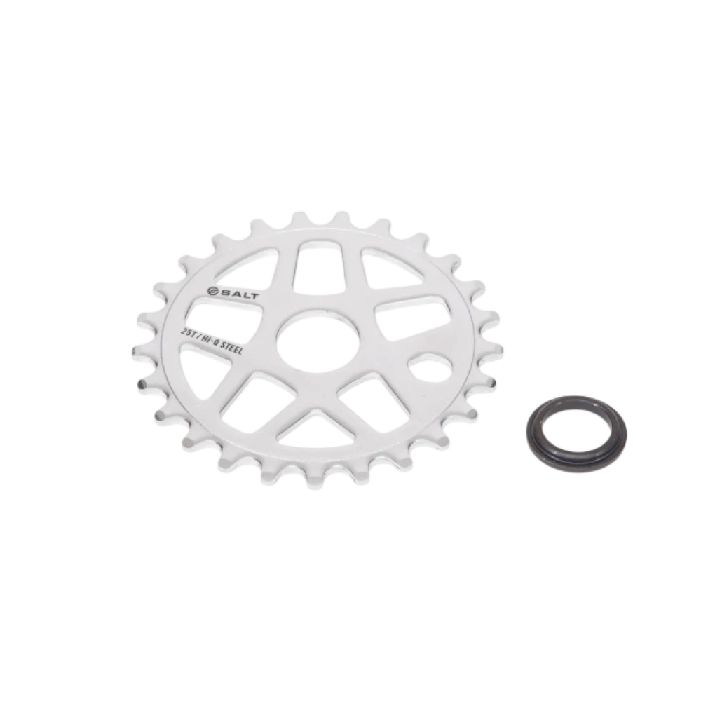 Das Salt Gateway Alloy Kettenblatt wurde für Fahrer entwickelt, die ein funktionales und langlebiges Kettenblatt zu einem fairen Preis suchen. Die 5 mm starke Konstruktion aus 6061-T6 Aluminium sorgt für eine hohe Widerstandsfähigkeit im täglichen BMX-Einsatz. Besonders der verstärkte Fixpunkt an der Kurbelaufnahme reduziert Materialermüdung und erhöht die Nutzungsdauer deutlich. Mit der 25T Übersetzung eignet sich das Kettenblatt hervorragend für moderne Street- und Park-Setups. Dank der mitgelieferten Adapter ist es sowohl mit 19 mm als auch mit 22 mm Achsen kompatibel. Das robuste Multi-Spoke-Design verbindet Stabilität mit einem zeitlosen Look, während die Farboptionen Silber und Oil Slick eine einfache optische Anpassung ermöglichen.