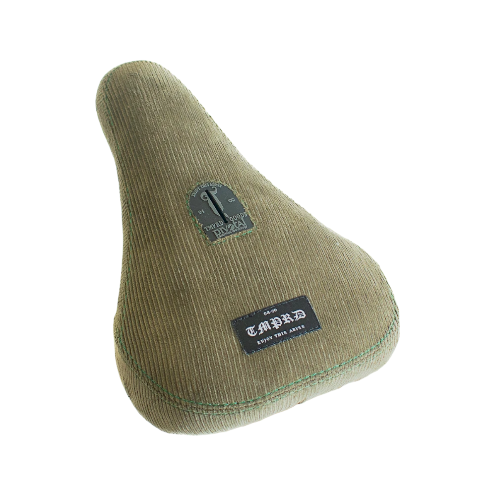 Der Tempered 70’s Corduroy Green Pivotal Seat ist ein Fat Seat mit Vinylbezug, Retro-Cord-Design, 317 g Gewicht – passend für Pivotal Posts.