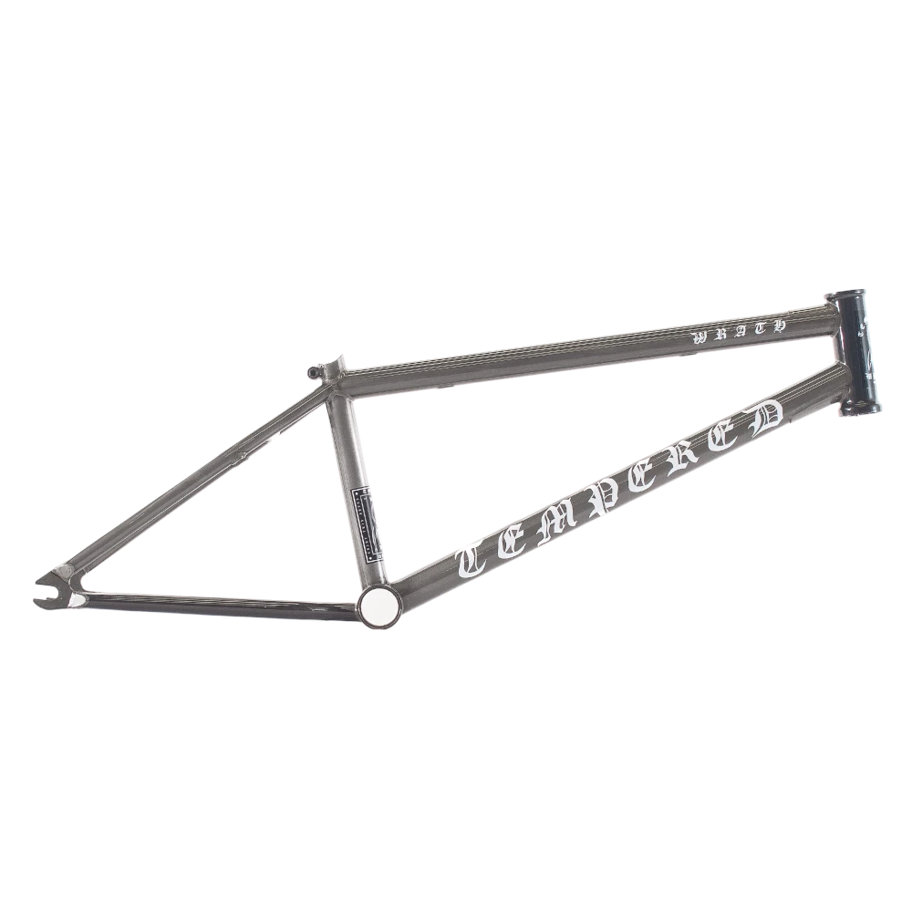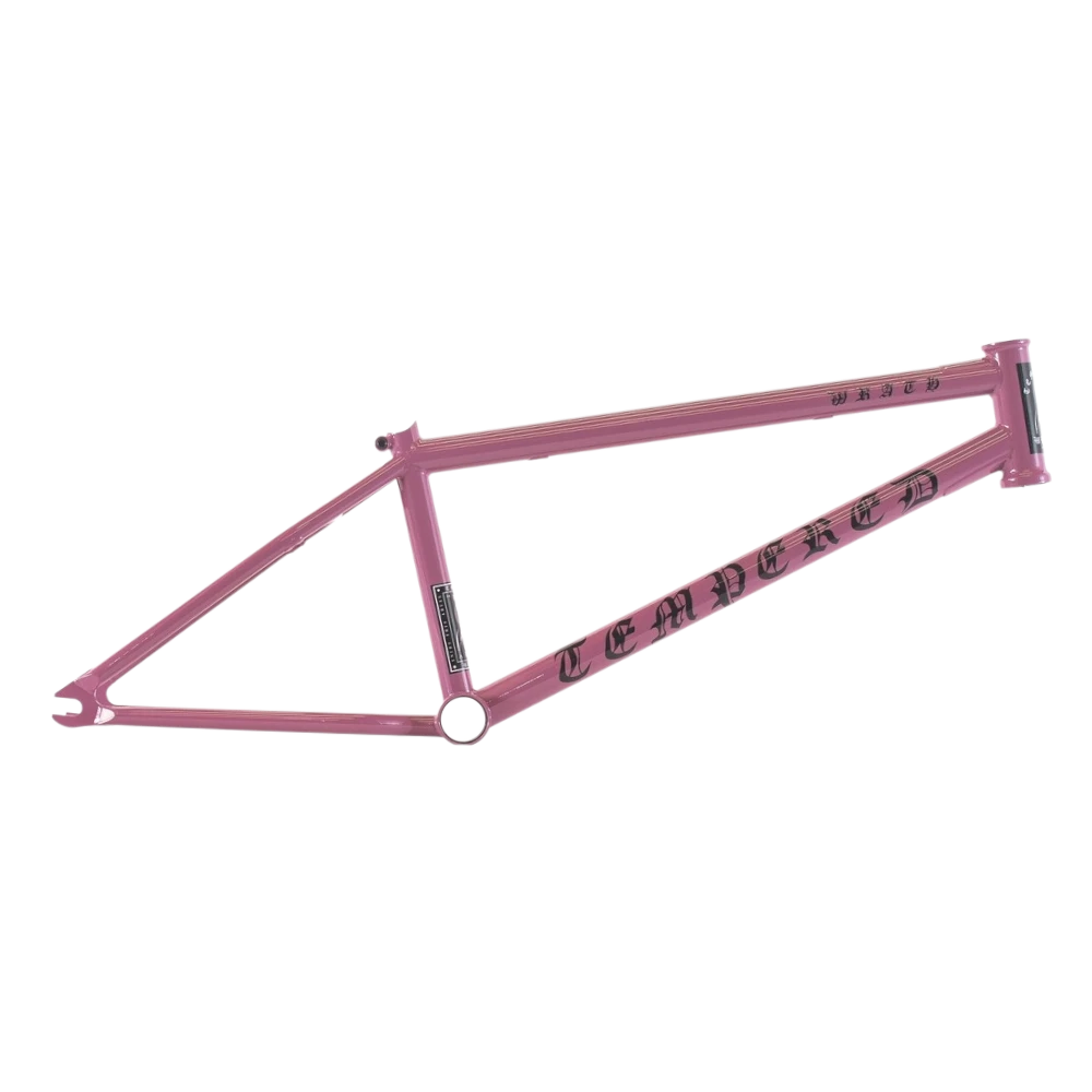 Der Tempered Wrath Frame ist ein Street-BMX-Rahmen aus 4130 CrMo mit kurzem 13–13.3" Heck, 75° Steuerrohrwinkel, 5" Headtube und in den Farben Black, Mauve und Raw erhältlich.